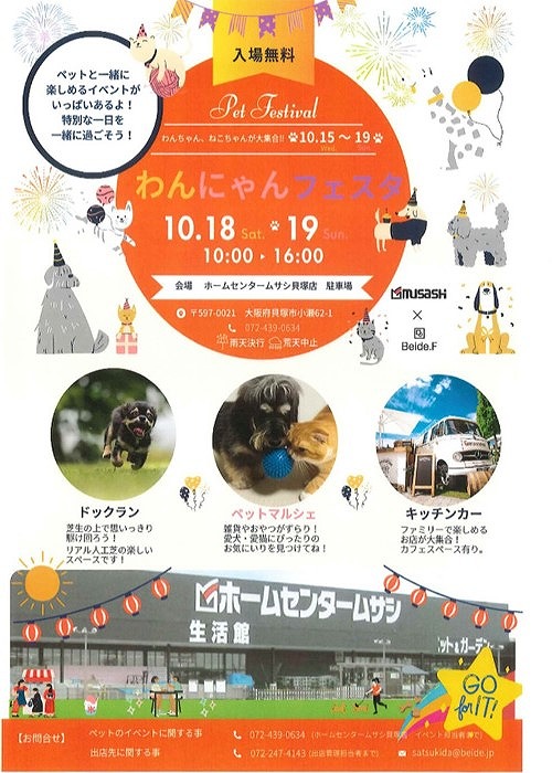 - 10/18(土)19(日)【大阪府/貝塚市】ムサシわんにゃんマルシェ in 貝塚店