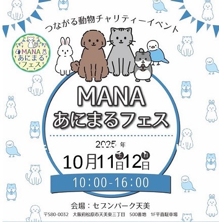 - 10/11(土)12(日)【大阪府/松原市】MANAあにまるフェス in セブンパーク天美
