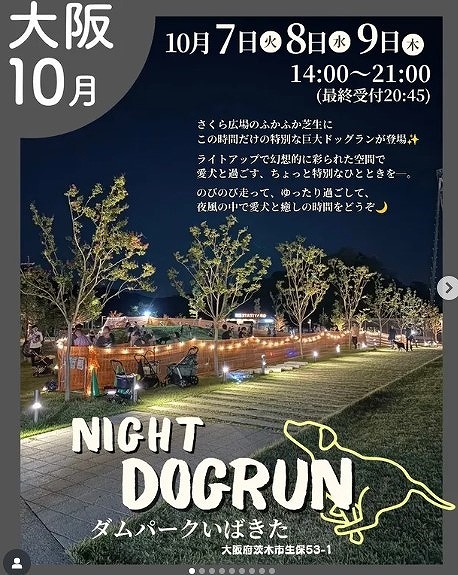 - 10/7(火)8(水)9(木)【大阪府/茨木市】あつまれ!わんダーランド ナイトドッグラン