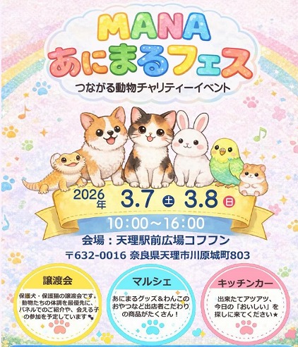 - 3/7(土)8(日)【奈良県/天理市】MANAあにまるフェス in 天理駅前広場コフフン