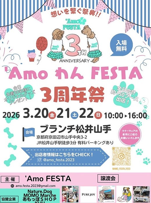 - 3/20(金祝)21(土)22(日)【京都府/京田辺市】‘Amo わん FESTA 3周年祭