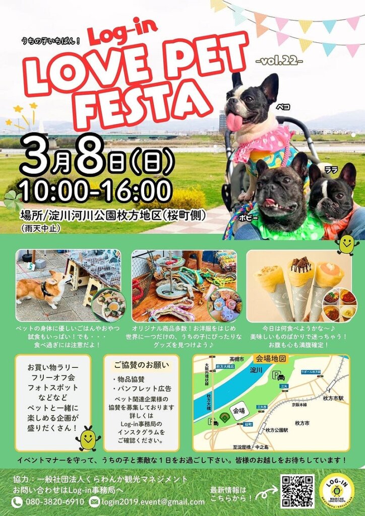 - 3/8(日)【大阪府/枚方市】Log-in LOVE PET FESTA-vol.22-河川敷公園枚方地区