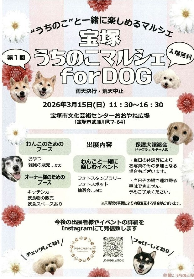 - 3/15(日)【兵庫県/宝塚市】宝塚うちのこマルシェforDOG